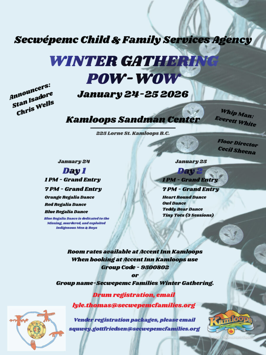 New SCFSA Building 153 Kootenay Way, Kamloops, British Columbia, CanadaRegistration required for all limited spot workshops. For questions and registration please email: Cit.registration@secwepemcfamilies.org